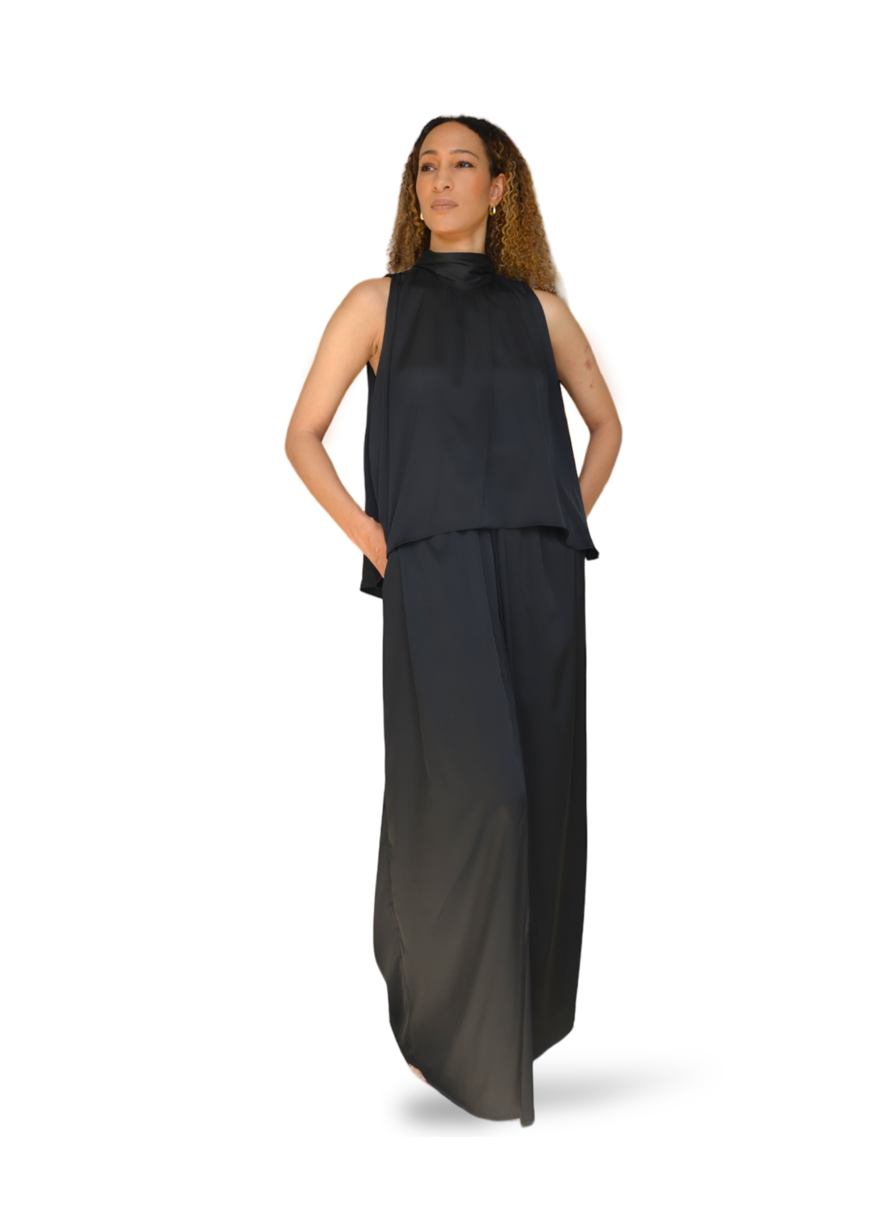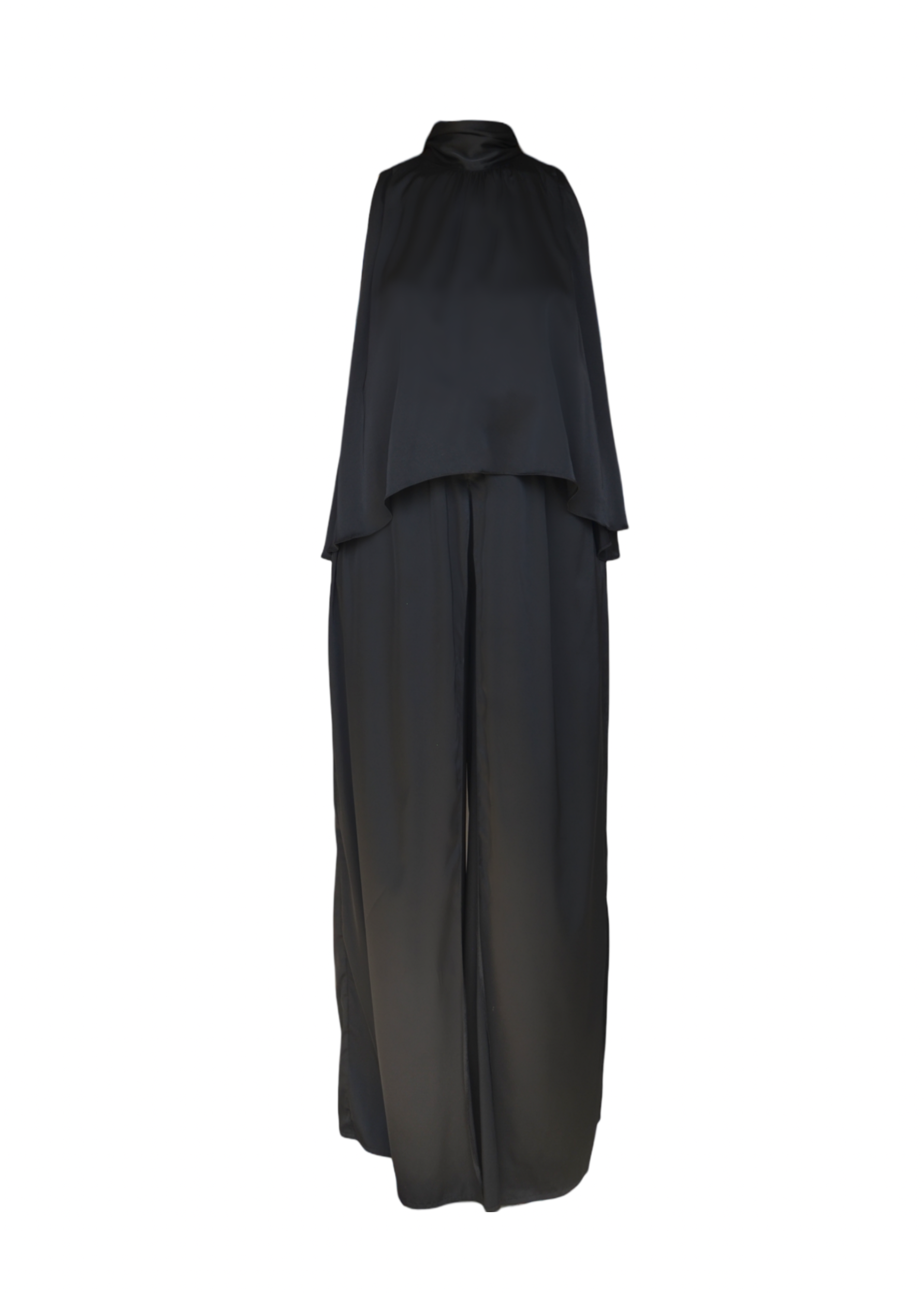 AFRIDA specialises in clothes that come to life on the human body. Try them on and feel empowered by their ability to evoke poise and grace. Afrida’s jumpsuit is cut from fluid satin in a loose silhouette enhanced by a gathered neckline with a sophisticated bow-tie in the back. Flowing legs with a front slit detail make it an elegant yet comfortable option. Wear it to a wedding reception or formal dinner and pair it with strappy sandals and a clutch.